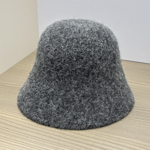 灰色羊毛混纺针织渔夫帽女冬季毛绒大头围保暖盆帽显脸小水桶帽子