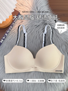 正版无痕内衣女薄款大胸无钢圈聚拢显小收副乳舒适上托防下垂文胸