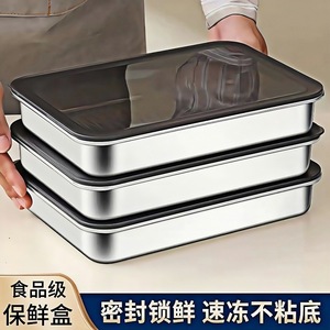 食品级不锈钢保鲜盒带盖饺子盒方盒子收纳盒冰箱冷冻密封可用饭盒