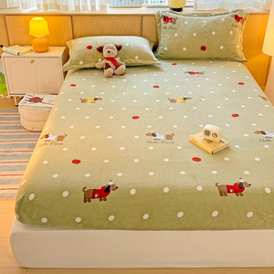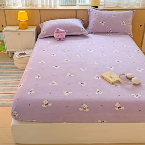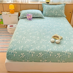 加厚牛奶绒印花单床笠冬季加绒全包床罩珊瑚绒床垫套保护罩三件套