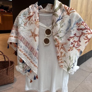 夏日度假风彩色海星流苏丝巾项链小众设计感长款方巾时尚个性配饰
