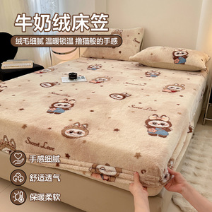 冬季加厚兔毛绒床笠单件儿童保暖床罩床垫保护套席梦思全包防尘罩