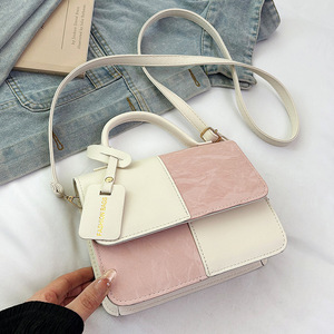 新款时尚潮流小众撞色设计高级质感单肩斜挎包百搭女包手提小方包
