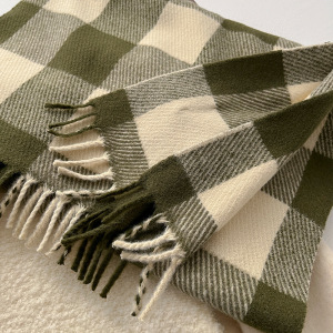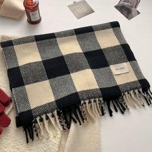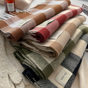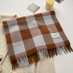 韩系仿羊绒围巾秋冬高级感加长简约女士格子百搭男士流苏围脖批发