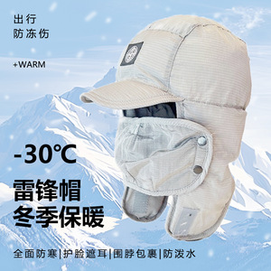 日系短帽檐雷锋帽男女东北加厚骑车护耳帽冬季户外骑行防寒棉帽子