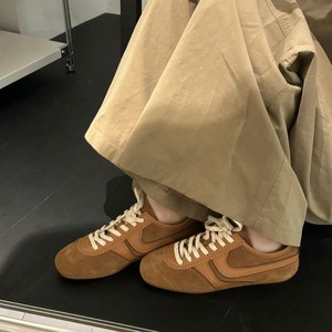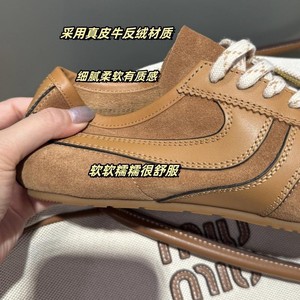 牛皮版~秋季真皮阿甘鞋休闲百搭运动鞋复古系带小众低帮德训鞋女