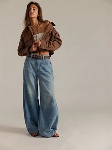 欧美外贸跨境早秋新款复古高腰阔腿牛仔裤女宽松设计长裤
