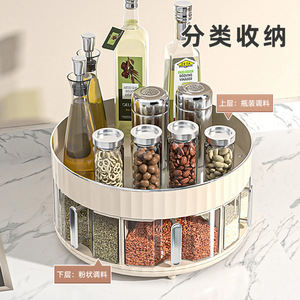 厨房调料盒一体多格调味料佐料收纳台面旋转调料油盐酱醋瓶置物架