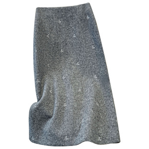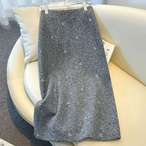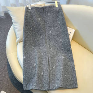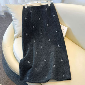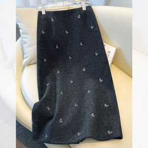 灰色羊毛蝴蝶结刺绣半身裙女秋冬2025新款小个子包臀a字裙毛呢裙