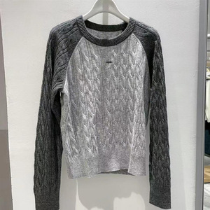 2025秋季新款学院风撞色插肩袖绞花圆领针织衫毛衣女4FA135711