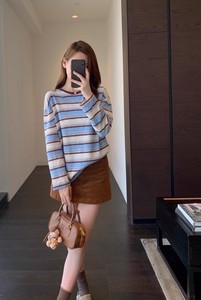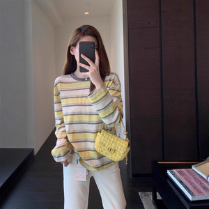 IG917氛围感 洋气感miu系条纹长袖T恤百搭显瘦打底衫女2025新