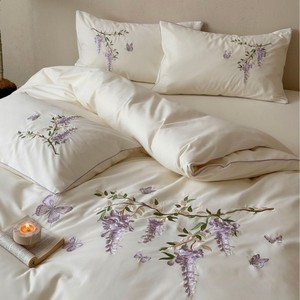 秋冬季简约轻奢风磨毛四件套刺绣全棉长绒棉被套纯棉床单床上用品