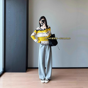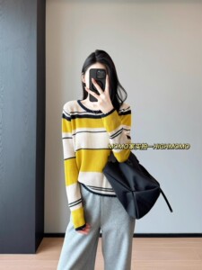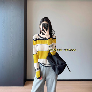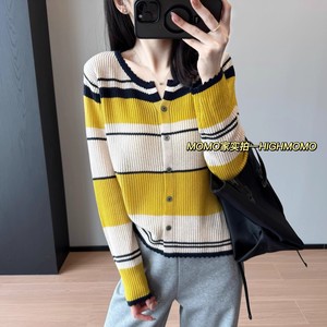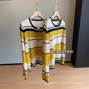CJ9171巨显白亮黄色!韩系穿搭温柔条纹针织衫显瘦气质上衣开衫25