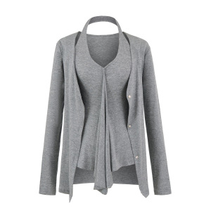 天丝V领长袖上衣女2025秋季新款韩系温柔外搭收腰系带显瘦开衫T恤