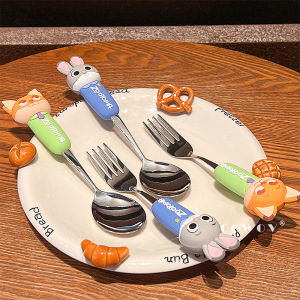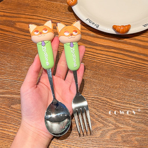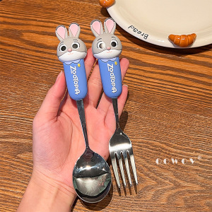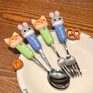疯狂动物城尼克朱迪不锈钢叉勺可爱儿童吃饭专用卡通叉子勺子餐具