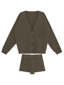 小仙倪子软糯松弛感针织衫套装秋季爆款美拉德宽松开衫短裤两件套