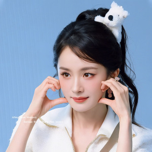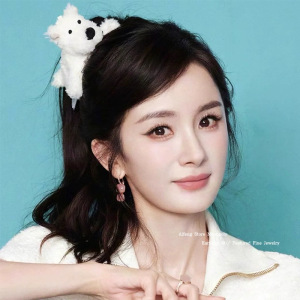 杨梅同款西高地毛绒小狗发夹女2025新款可爱卡通发卡侧边夹子头饰