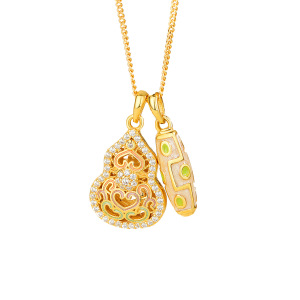 s925纯银珐琅葫芦天珠项链女时尚个性新中式毛衣链国潮高级感银饰