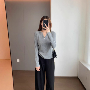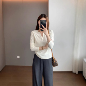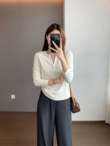 精致时髦 兰精天丝精棉柔软亲肤修身版半开V领纽扣打底衫603032