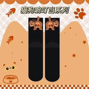 【现货】白色卡通猫咪叮叮当蛋蛋袜子女夏季ins棉可爱搞怪中筒袜