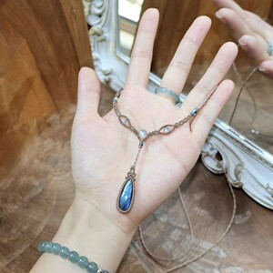 清冷感蓝色水滴吊坠项链女轻奢气质高级感毛衣链时尚百搭锁骨链