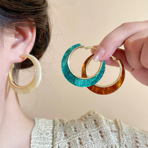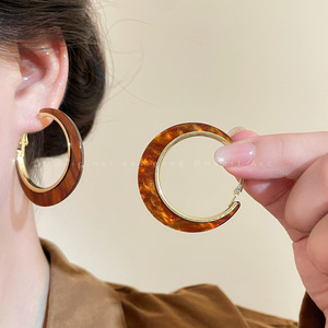 复古美拉德大圈圈耳环女轻奢高级感气质耳圈小众独特素圈耳钉耳饰