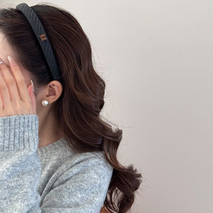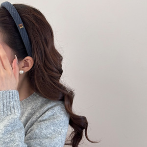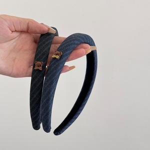 复古百搭斜纹可爱小熊发箍女2025高颅顶海绵头箍时尚简约百搭发饰