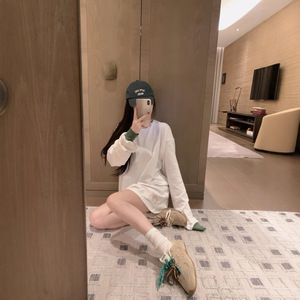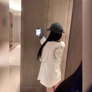 南油高订梵文复古印花圆领套头长袖T恤女潮牌长款宽松上衣