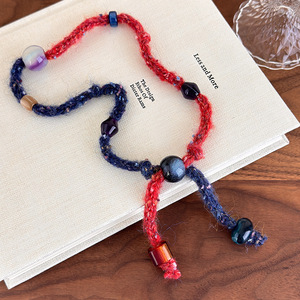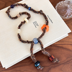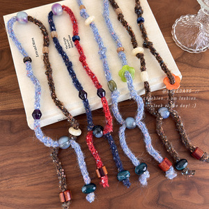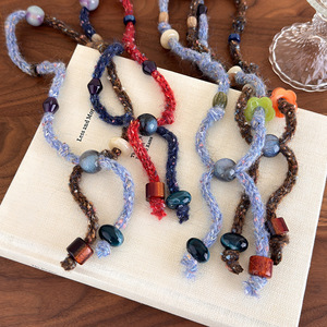 复古针织毛线串珠抽拉项链女2025新款独特设计毛衣链个性挂脖配饰