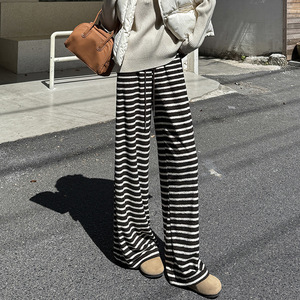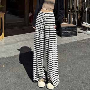 条纹针织阔腿裤女秋季新款抽绳松紧高腰显瘦慵懒垂坠感休闲拖地裤