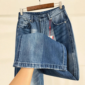 25秋季新款女士撞色水洗美式辣妹显瘦设计感拼接高腰牛仔裤0917a9