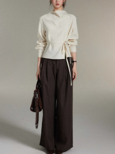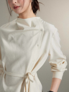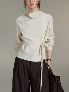 贰羊【时宜】简约对称荡领斜门襟绑带腰衣女高级感衬衫