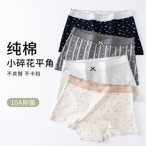 纯棉内裤女碎花平角裤中腰无痕10A抑菌加长加宽裆女生大码四角裤