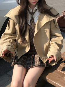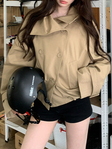 2025年秋季新款英伦风设计感立领短款韩系风衣气质显瘦百搭外套女