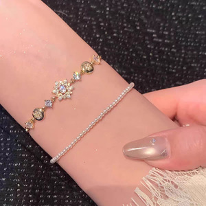 清冷抽拉气质冬日雪花精致轻奢小众设计锆石高级手饰调节时尚手链