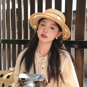 高品质~拉菲镂空平顶帽子女新款夏季礼帽