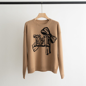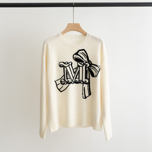 MAX~25秋冬新款提花蝴蝶结图案高级感外穿羊绒毛衣女宽松休闲南油