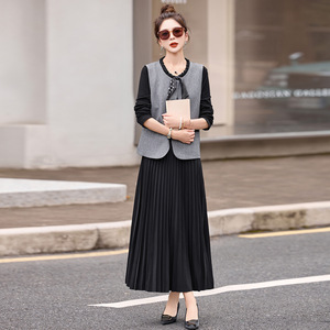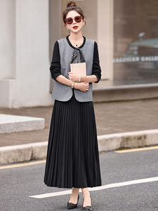 法式小香风马甲套装裙女2025春秋新款洋气减龄百褶连衣裙两件套
