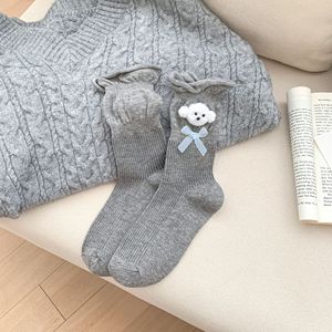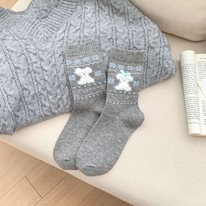 花田兔 灰蓝可爱暖绒卡通狗狗堆堆袜子女加厚保暖蝴蝶结羊毛袜