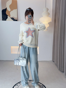 爱元2025秋季新款休闲长裤大码女装胖妹妹设计感刺绣牛仔裤YC288