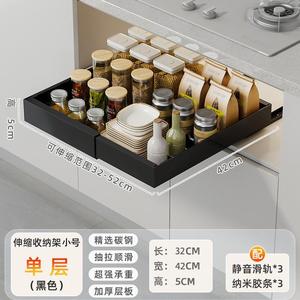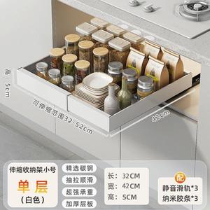 严选抽拉式厨房置物架免打孔抽屉式橱柜碗碟拉篮下水槽抽拉收纳架