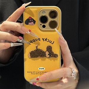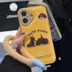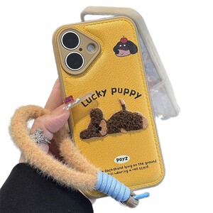 刺绣小狗挂绳新款适用苹果17pro手机壳华为pura70气垫壳防摔16/15