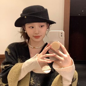 赫本风千金帽子女款秋冬法式高级感显脸小羊毛黑色礼帽女2025新款