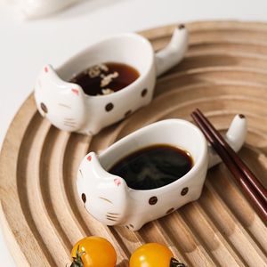 呆萌可爱猫咪陶瓷调料碟家用调味蘸料碟筷架创意手绘釉下彩小华庚