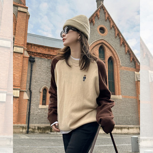 莉贝琳sisy半糖小熊毛衣撞色插肩袖针织衫厚秋冬新款上衣女