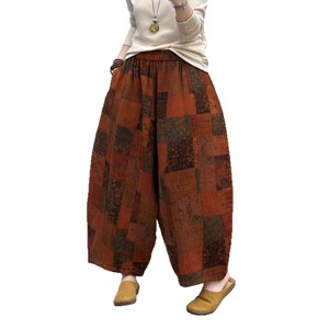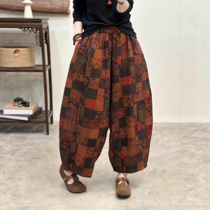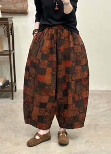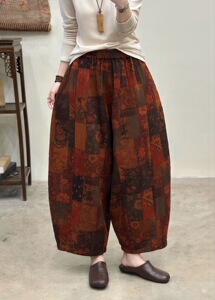 2025秋季新款 复古印花斜纹双纱阔腿裤女 宽松高腰大码长裤 9227