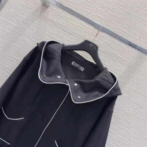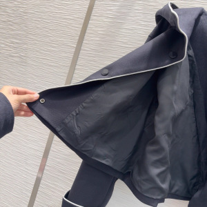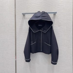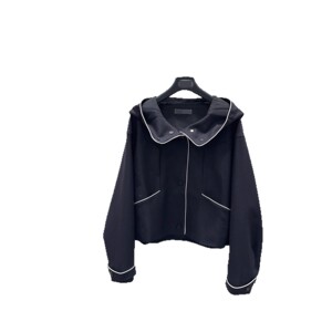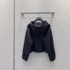 深圳南油款气质优雅时尚简约撞色边刺绣拉链长袖短款连帽风衣外套