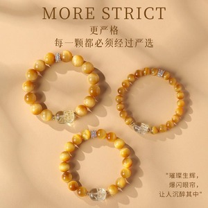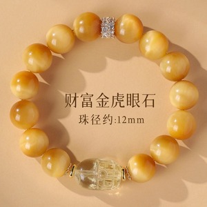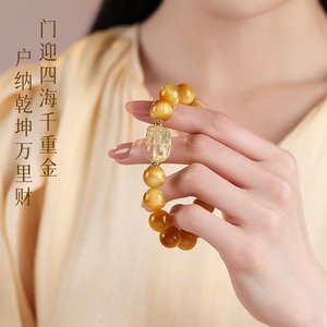 天然黄水晶貔貅手串收藏级新中式财富金虎眼石手串手链情侣礼物