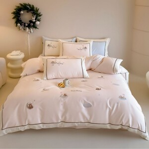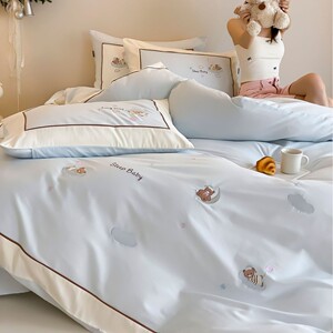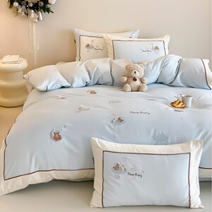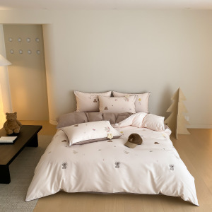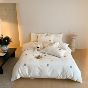 秋冬卡通小熊全棉磨毛四件套可爱刺绣加厚纯棉被套床单床上用品