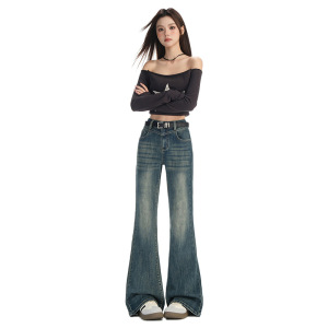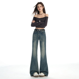 复古时髦微喇牛仔裤女2025秋季新款弹力不贴腿显瘦设计感喇叭裤子